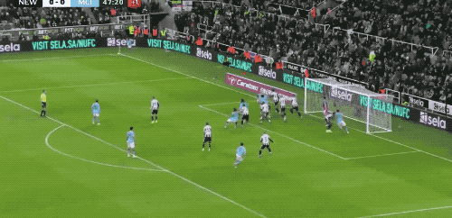第49分钟,阿克45度传中,努内斯没能顶到皮球却晃了戈登一下,差点造成戈登的自摆乌龙。